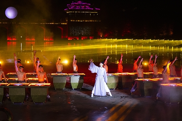 吃過晚飯,小鎮(zhèn)里的“居民”信步來到太極廣場,山水大秀《逍遙游》將會在此演出,180°的臨水舞臺和水上延展舞臺,全方位近距離為我們展現(xiàn)。